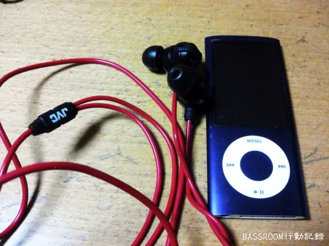 青のnanoと赤いイヤフォン。