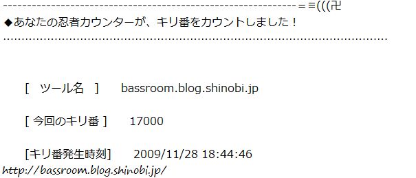 少し前に「キリ番アクションがあるので設定しましたぁ!」